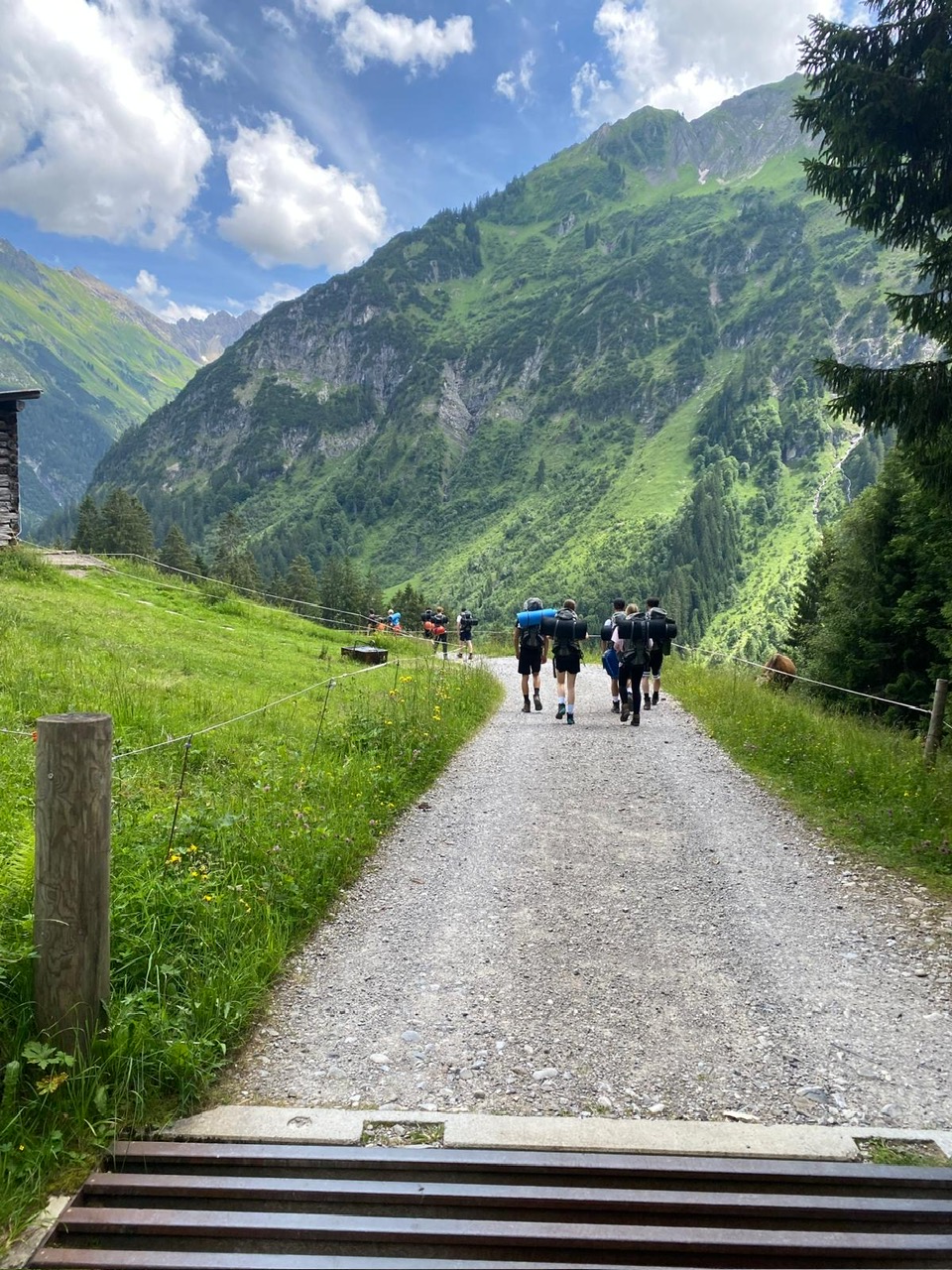 Unsere Abschlussfahrt begann am frühen Morgen des 8.Juli mit der Abreise per Zug in das idyllische Kleinwalsertal. Nach einer mehrstündigen Fahrt und einer kurzen Busstrecke erreichten wir schließlich unsere Unterkunft: das Outward Bound Zentrum in Baad. Nach dem Einchecken und einer kurzen Pause machten wir uns auf den Weg zu unserem ersten Abenteuer – dem Kletterfelsen. Unter Anleitung erfahrener Trainer wagten wir uns an verschiedene Kletterrouten. Diese Aktivität förderte nicht nur unser Selbstvertrauen, sondern auch die Zusammenarbeit innerhalb der Klasse. Nach einem anstrengenden, aber erfüllenden Tag kehrten wir zur Unterkunft zurück und ließen den Abend gemütlich bei einem Lagerfeuer ausklingen.