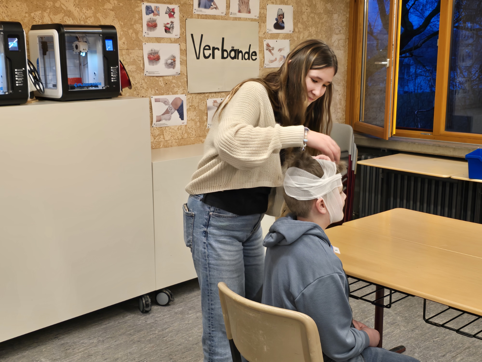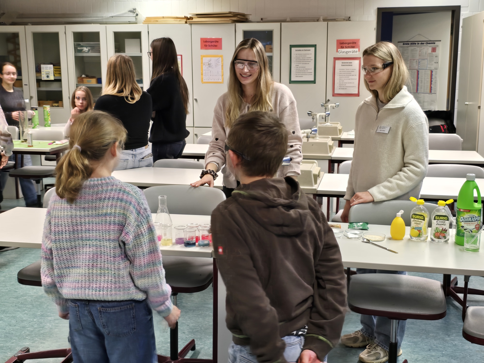 Für die Kinder wurde parallel ein abwechslungsreiches Workshop-Programm angeboten. Ob bei den Schulsanitätern, in der Bläserklasse oder in den naturwissenschaftlichen und hauswirtschaftlichen Fachbereichen – die jungen Besucherinnen und Besucher konnten aktiv teilnehmen und das Schulleben hautnah erleben. Begleitet wurden sie dabei engagiert von Schülerinnen und Schülern der neunten und zehnten Klassen, die authentische Einblicke in ihren Schulalltag gaben und gerne von ihren eigenen Erfahrungen berichteten.