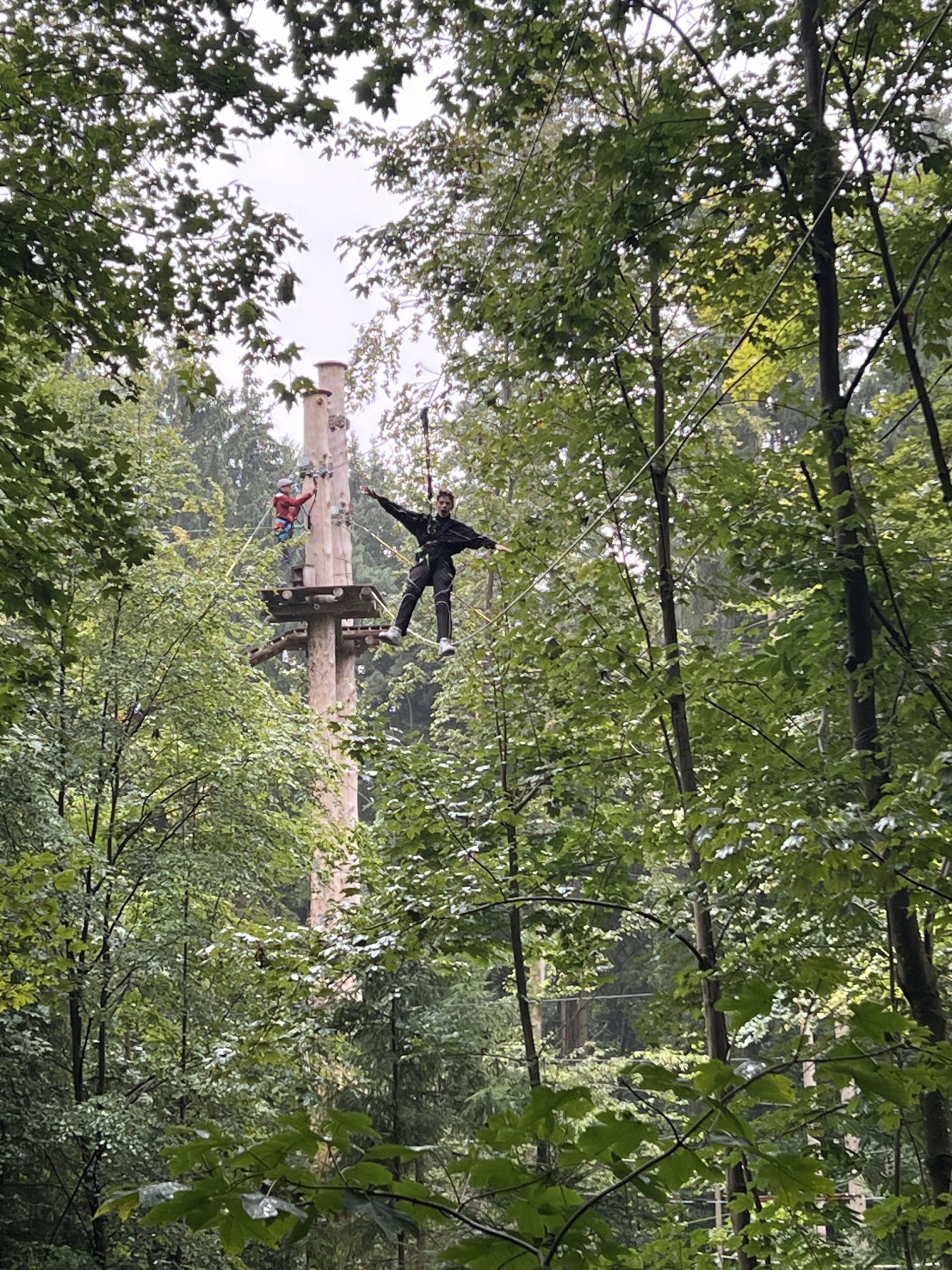 Nachmittags warteten spannende Programmpunkte: erlebnispädagogische Spiele, Entspannungsübungen, ein Besuch im Kletterwald, Experimente mit Trockeneis im Explorinho und eine unvergessliche Alpakawanderung.