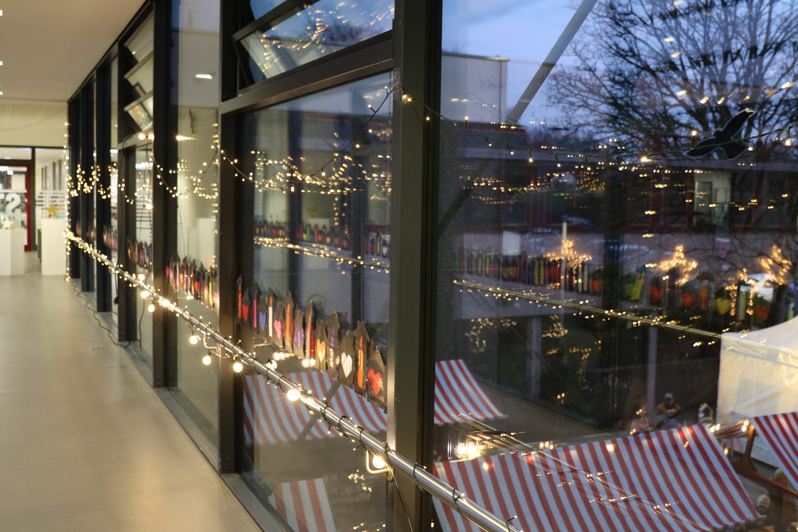Der Schulhof und der Innenhof waren mit weihnachtlich geschmückten Ständen gefüllt, an denen Selbstgebasteltes, Weihnachtsdekoration und handgemachte Geschenke angeboten wurden. Besondere Highlights waren die selbstgebackenen Plätzchen, das Essensangebot der Metzgerei Fuchs und die Punschvariationen, die vor allem bei den kalten Temperaturen für wärmende Momente sorgte.