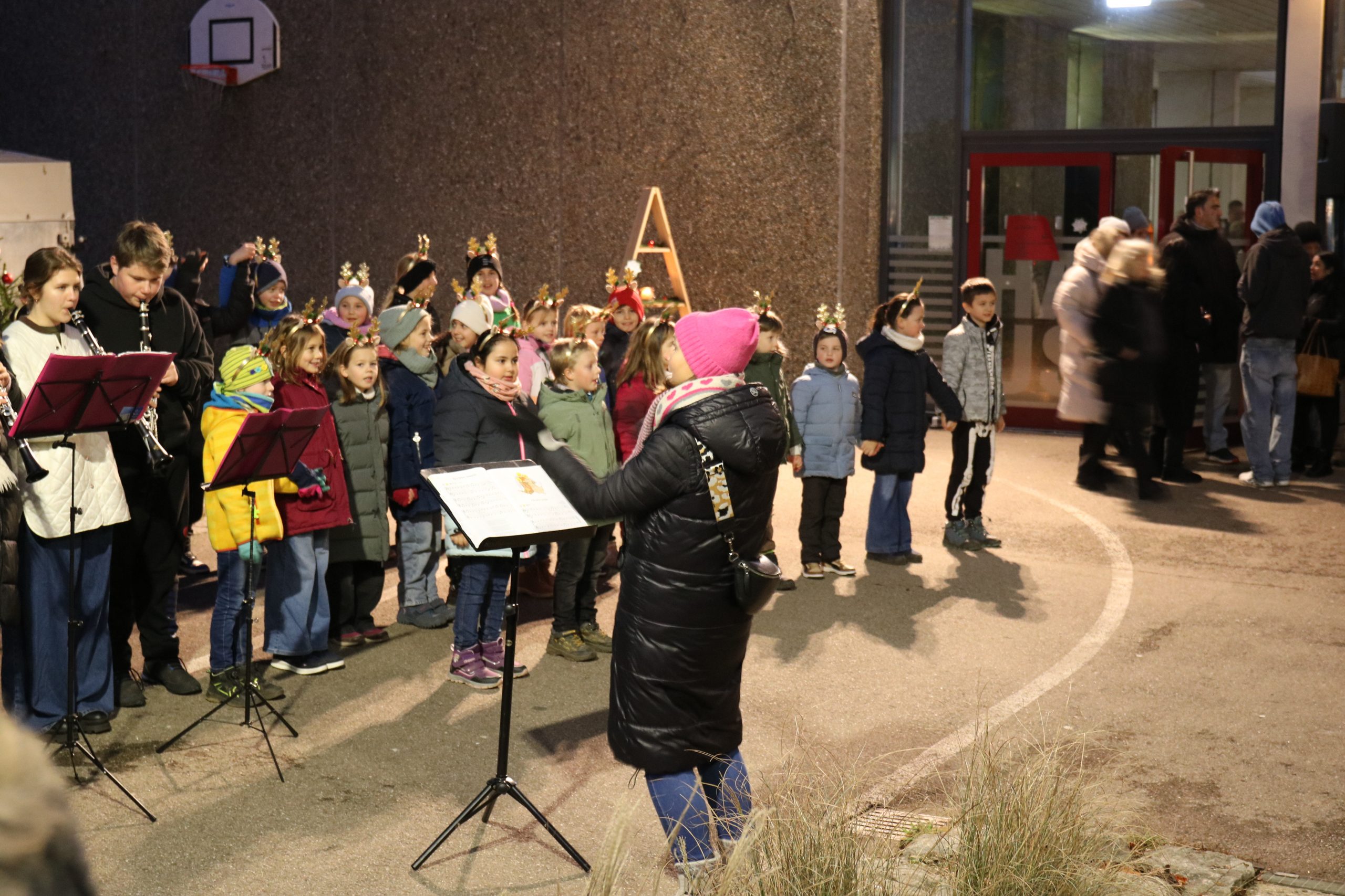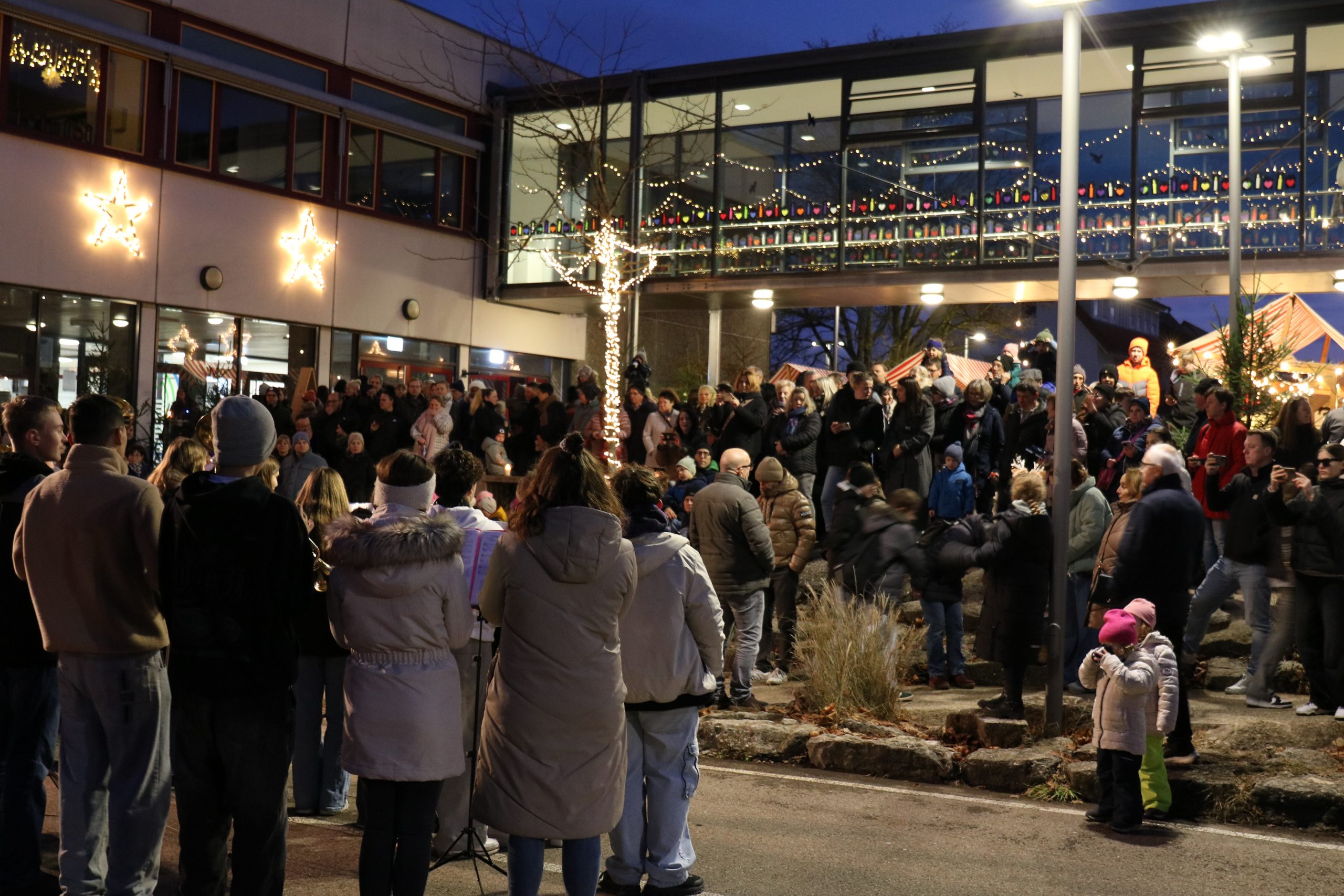 Der Weihnachtsmarkt wurde feierlich mit einem Auftritt der Bläserklasse eröffnet, der traditionelle und moderne Weihnachtslieder zum Besten gab. Die Klänge stimmten die Gäste perfekt auf den Abend und die besinnliche Weihnachtszeit ein und umrahmten das gesamte Fest mit vielen Auftritten. Schulleiter Herr Rathgeb begrüßte gemeinsam mit Birgit Munz vom Förderverein die Besucher herzlich und bedankte sich bei allen Beteiligten für die engagierte Vorbereitung.